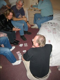 Teaching everybody how to play Pai-Gow Poker. But Jim was the only
